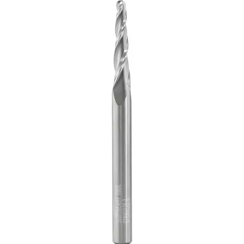 Tapered ball nose upcut spiral bit. Used for round bottom cuts, carving, fluting and 3D modeling. Recommended for for natural wood, plastic, and aluminum.