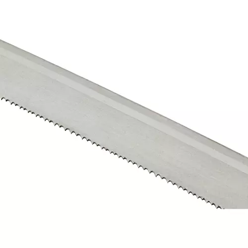 These 121-1/2" L x 1" W - 10-14 VP TPI metal cutting bandsaw blades are .03" thick and made from high carbon steel. These blades feature hardened teeth and a flexible back to provide extra cutting sharpness and durability for all metal cutting applications.