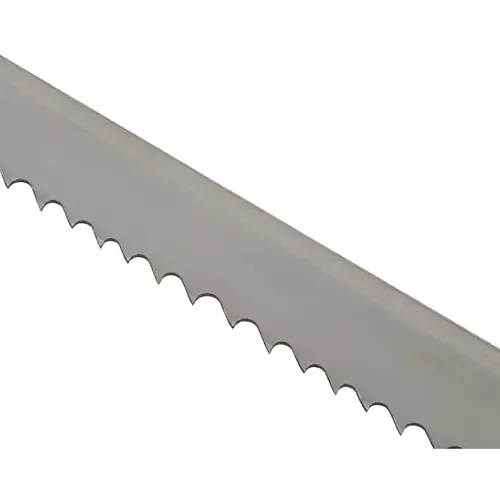 These 121-1/2" L x 1" W - 3-4 VP TPI metal cutting bandsaw blades are .03" thick and made from high carbon steel. These blades feature hardened teeth and a flexible back to provide extra cutting sharpness and durability for all metal cutting applications.