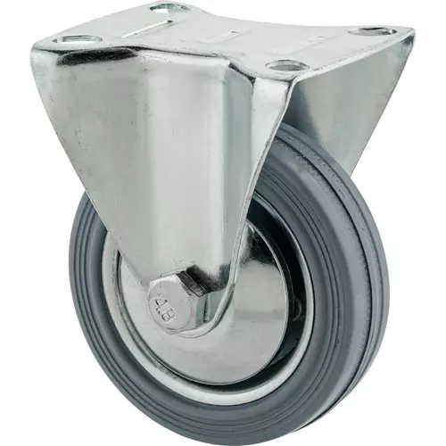 These casters feature a soft gray rubber wheel with an oil-less bearing.