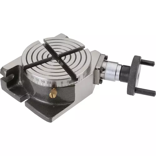 This 4" Rotary Table is perfect for doing smaller, precision work, and features whole degree scale on the dial, worm gear drive and a lash adjustment screw.