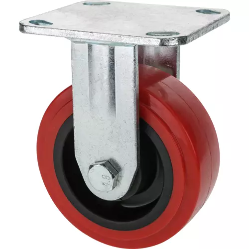 This molded polyurethane caster features roller bearings to provide a smooth action, non-marring wheel for the heaviest applications.