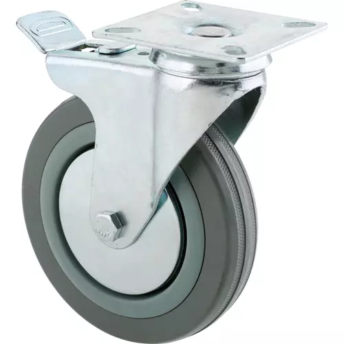 D2600 5" Gray Rubber Double Brake Swivel Caster