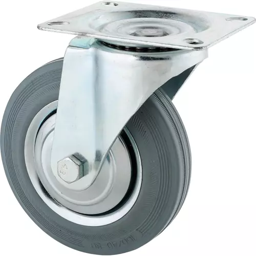 These casters feature a soft gray rubber wheel with an oil-less bearing.