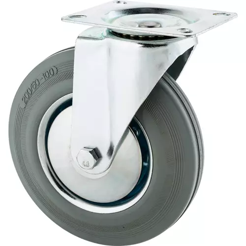These casters feature a soft gray rubber wheel with an oil-less bearing.