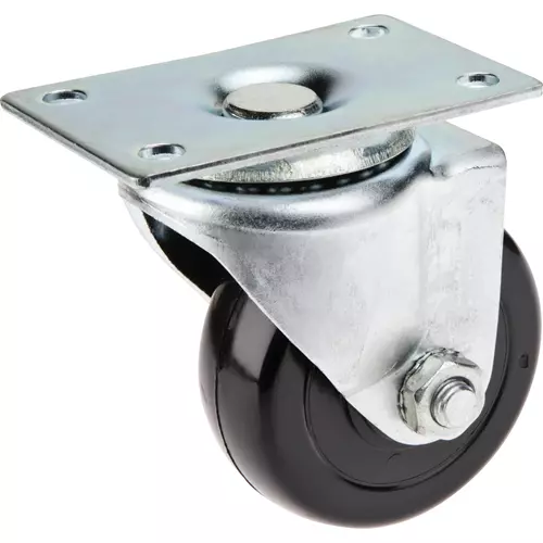 This steel swivel caster features a non-marring polyurethane to protect your floors. The synthetic material is durable and resistant to abrasion, chemicals, and oil.