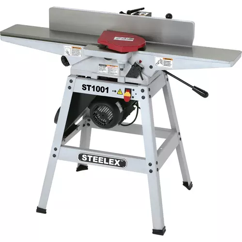 This 6" Jointer is indispensable for creating finished surfaces or preparing material for further milling. It features a 46" long table, 3/4 HP motor, stable A-frame stand, center-mounted fence with ±40º bevel adjustment and 4" dust port. It also features a handwheel adjustable outfeed table for precision alignment and lever adjustable infeed table for quick depth of cut settings. Includes rabbeting table and safety guard.Motor: 3/4 HP, 110V, single-phase Maximum stock width: 6 1/8" Maximum depth of cut: 1/8" Maximum rabbeting capacity: 1/2" Cutterhead diameter: 2 1/2" Knives: 3(HSS)6"x5/8"x1/8" Cutterhead speed:4,800 Table size:6"x46" Table height from floor: 33 3/8" Cuts per minute: 14,400 Fence size: 4 7/8"Hx35"L Fence adjustment: positive stops @ ±45º & 90º Overall dimensions: 46" L x 28" W x 39" H Approximate shipping weight: 210lbs.
