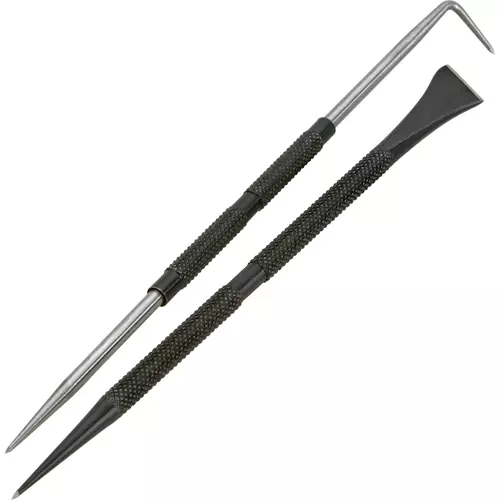 This 2 piece double ended Machinist's Scriber Set is ideal for all marking and layout work on metal surfaces. Different tip designs provide options for various layout challenges and knurled grips offer plenty of control. Hardened alloy steel tips.
