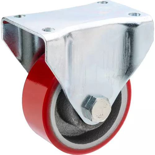 This cast-iron fixed caster features non-marring polyurethane to protect your floors.