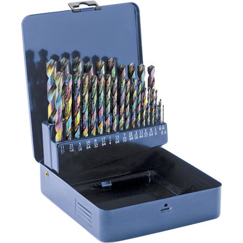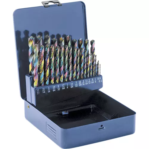 Because of its resistance to heat and stress, Cobalt Alloy bits turn faster without overheating. The 135° split point enables the drill to use less thrust and eliminates the tendency of the drill point to walk which makes these great for use in portable drills or drill presses. Cobalt Alloy bits will retain their edge sharpness longer than normal HSS bits, resulting in a significant saving of time and money in the workshop. We've assembled some fantastic money-saving sets here. All sets include a heavy-gauge steel index case for storing.