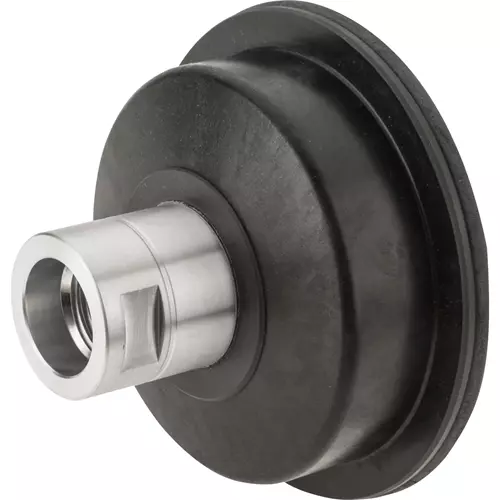 Versatile vacuum chuck heads that will seat flat, concave, and convex surfaces. The body of the chuck is molded in glass filled nylon and the mounting adapter is aluminum; the seals are glued into place with pressure sensitive adhesive. The inside seal ring accepts convex radius while the outside ring accepts concave radius. Both will work with flat surfaces. Simply place the No-Lock spindle washer over the spindle before hand tightening the vacuum head. 6" Chuck Head, fits 1-1/4" x 8 Spindle.