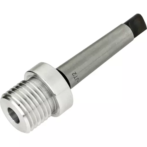 Allows easy transfer centering projects from standard chucks to a vacuum head by attaching a standard chuck on to a tail stock with a one-way type live center or #2 Morse taper.  1.25"x8 chuck x #2 Morse taper.