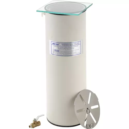 This new, improved version of the wood stabilization system has an ultra high strength tempered glass top that eliminates any possible cracking or chemical incompatibilities if using other brands of resin or products. Top two side ports give added versatility, one vacuum port and one option vacuum bag system support. The new seal is easier to remove for cleaning and the chamber has a drain valve at the bottom, allowing the resin to be easily drained back into a container for future use. It can also be used to pull resin into the chamber using a vacuum, making for cleaner, easier operations. We know of no other chamber that has this feature! Measurements: 6" diameter and 18" in height.
