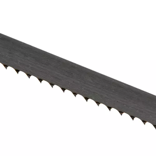 Width is an important factor when considering a new blade. The typical range is as small as 1/8" wide to 3/4" wide. This 3/8" wide blade is good for contour sawing with a minimum radius of 1-1/2". For resaw cutting, you will want to fit the widest blade available for your machine.