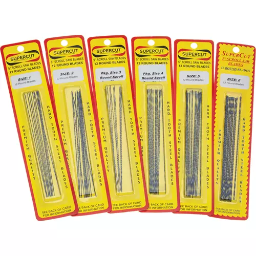 These 72-piece scroll saw blade packs fit scroll saws using plain blades. Each set includes 12 each of the listed styles. You’ll never be caught short again!