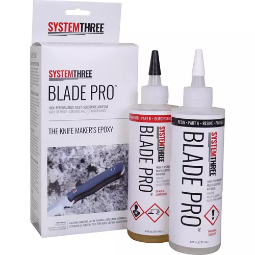Blade Pro Epoxy Adhesive is a two-component, high-performance glue designed specifically for the knife maker. This state of the art adhesive forms super tough, flexible bonds to wood, Micarta, G10, and other composites. Tenacious bonds are developed to non-ferrous metals, as well as stainless, and carbon steel. Blade Pro Epoxy Adhesive is low in viscosity and is easy to spread. Because of its lower viscosity, it is suitable for both full and hidden tang applications.
