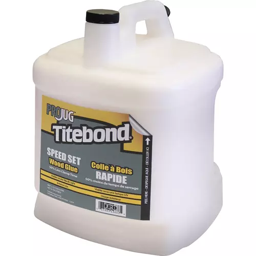 Titebond Speed Set Wood Glue is an extremely fast-setting, high solids PVA adhesive. It provides exceptional gap filling properties developing a bond stronger than the wood itself. This product offers excellent sandability, unaffected by finishes, and increases productivity through its shorter clamp time with no increase in viscosity. Titebond Speed Set is non-toxic and cleans up with water.