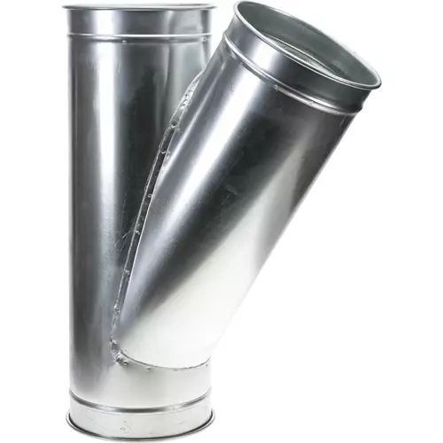 Galvanized branches used for dropping down from above & splitting main line. Long angle reduces suction loss. Made in the USA.