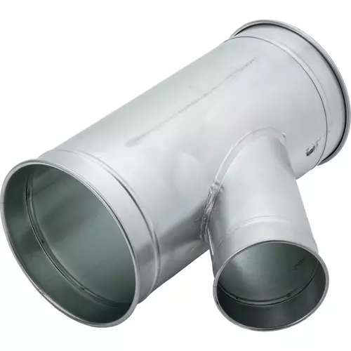 Galvanized branches used for dropping down from above & splitting main line. Long angle reduces suction loss. Made in the USA.