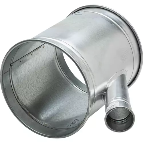 Galvanized branches used for dropping down from above & splitting main line. Long angle reduces suction loss. Made in the USA.
