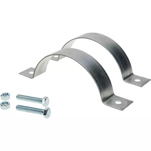 Bolt these around any industrial dust collection duct and attach a piece of metal conduit with flattened and drilled ends (not included) for additional support from a wall or ceiling. Comes with screws and bolts.