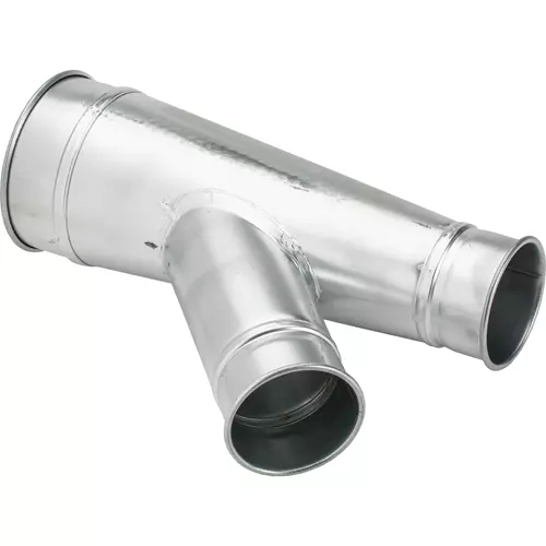 Galvanized branches used for dropping down from above & splitting main line. Long angle reduces suction loss. Made in the USA.