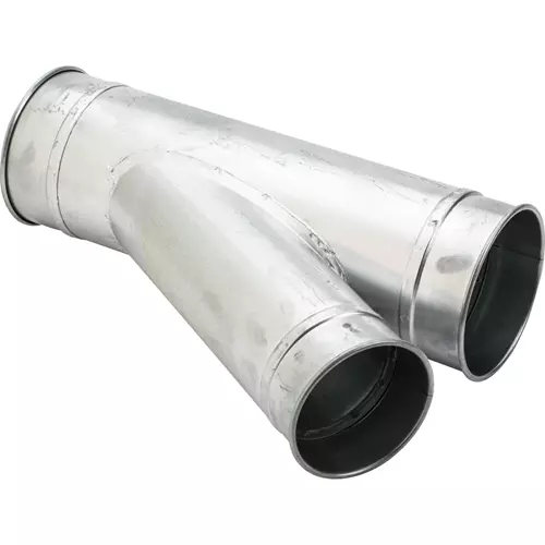 Galvanized branches used for dropping down from above & splitting main line. Long angle reduces suction loss. Made in the USA.
