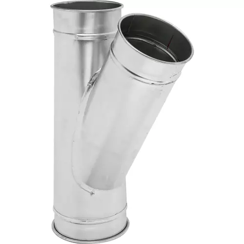 Galvanized branches used for dropping down from above & splitting main line. Long angle reduces suction loss. Made in the USA.