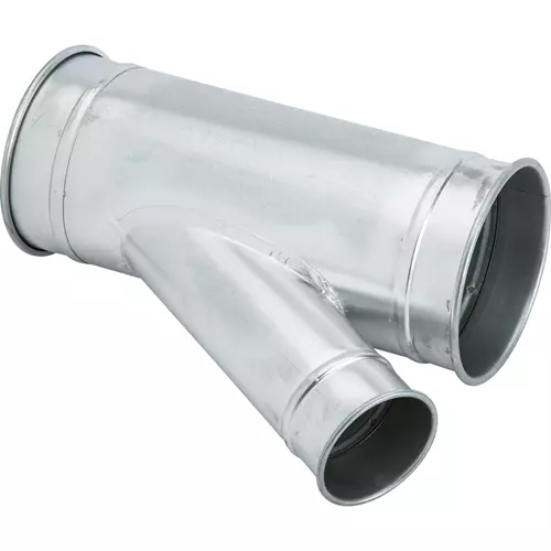 Galvanized branches used for dropping down from above & splitting main line. Long angle reduces suction loss. Made in the USA.