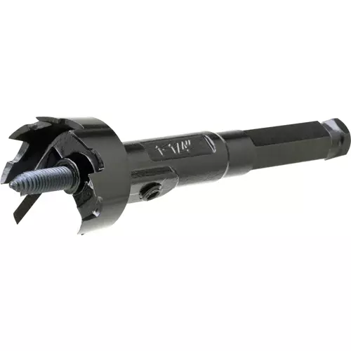 This heavy-duty Forstner bit has a 1/2" hex shank and a black oxide finish.