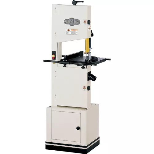After testing this new Shop Fox® Bandsaw, we couldn't resist adding it to our already expanded line. With features like the patent pending Quick Blade Tensioner, formed and welded steel construction, precision ground tables and cabinet type stands make this one of, if not the best bandsaw available today. Comes complete with a quality miter gauge, a fence that locks at both ends, hinged wheel covers and a dust port. To set the blade to its correct tension, release the quick change blade lever, install blade, lock down, and you're done! When you do this for the first time, you would tighten or loosen the fine adjustment knob for the exact tension. After that, blade changes are simple and incredibly fast!