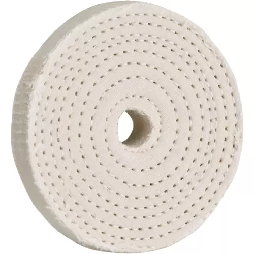 Each layer is 100% unbleached cotton sheeting, spiral sewn approximately 1/8" apart. For final finishing on brass, stainless steel, aluminum, bronze and cast iron.