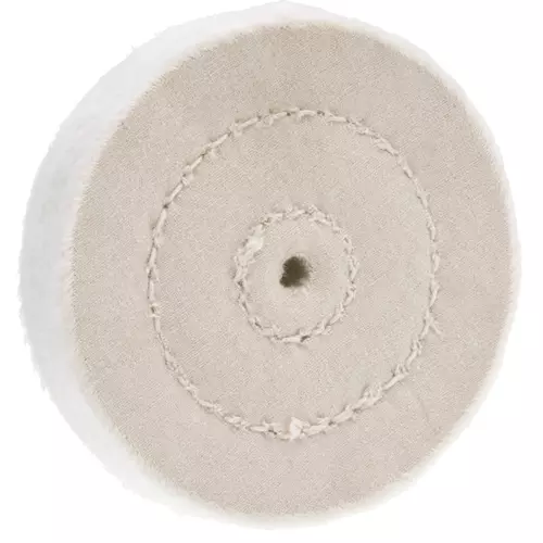 Soft feather-edged muslin is concentrically stiched together near the center, leaving the outer edge to provide a fine polishing surface. Perfect for stainless steel, chrome, gold or silver.