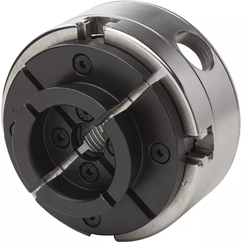 It features jaws that grip by clamping around the workpiece or expanding to fit a turned recess.