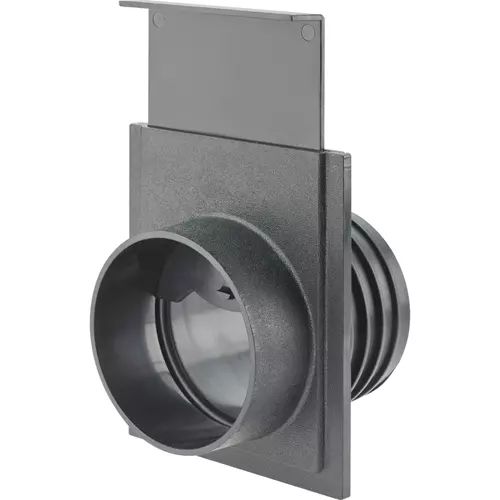 This 4" OD blast gate connects between spiral flexible hose and solid round pipe. 3-15/16" ID round end. Threaded end twists inside flexible hose for a secure fit.
