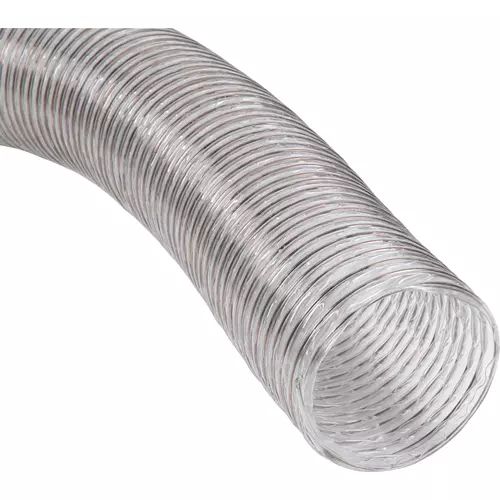 We carry hose diameters for many different applications. Spiral wire reinforced clear hose allows easy inspection for locating potential clogs in your duct system. Uses RH fittings. 4" ID.