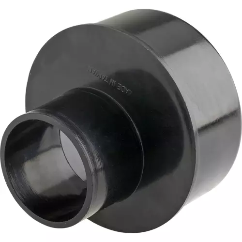 This 4" OD x 2-1/4" OD Eccentric Reducer reduces 4" hose to 2-1/4" hose. The off-center alignment keeps dust from collecting in the system. Heavy wall thickness stands up to hose clamp pressure.