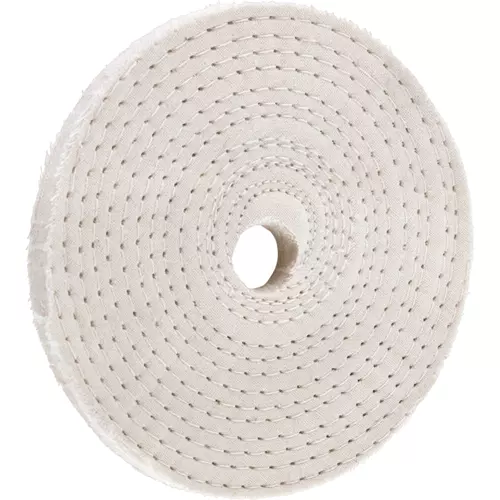 Each layer is 100% unbleached cotton sheeting, spiral sewn approximately 1/8" apart. For final finishing on brass, stainless steel, aluminum, bronze and cast iron.