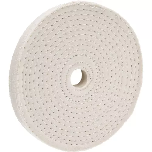 Each layer is 100% unbleached cotton sheeting, spiral sewn approximately 1/8" apart. For final finishing on brass, stainless steel, aluminum, bronze and cast iron.