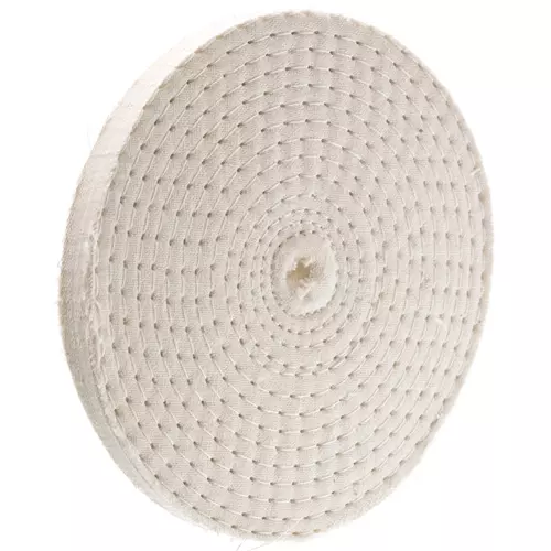 Each layer is 100% unbleached cotton sheeting, spiral sewn approximately 1/8" apart. For final finishing on brass, stainless steel, aluminum, bronze and cast iron.