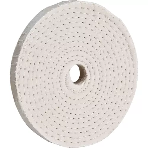 Each layer is 100% unbleached cotton sheeting, spiral sewn approximately 1/8" apart. For final finishing on brass, stainless steel, aluminum, bronze and cast iron.