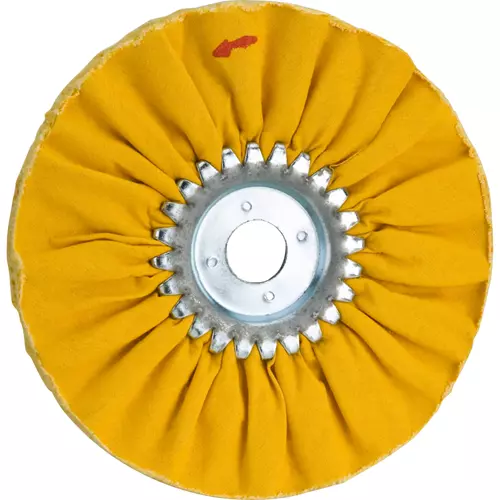 This Hard Airway buff is 100% cotton that's been treated to stiffen the material. The pleats help hold compound. Hard buffs are perfect for removing light scratches in a wide variety of metals.