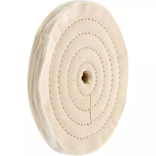 Soft feather-edged muslin is concentrically stiched together near the center, leaving the outer edge to provide a fine polishing surface. Perfect for stainless steel, chrome, gold or silver.6" x 40 Ply x 1/2" Soft Muslin Buffing Wheel, 5000 RPM