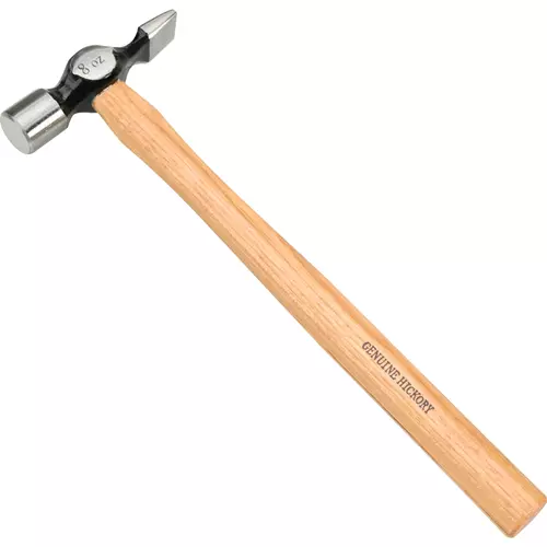 This Cross Peen Hammer features genuine hickory handles and is extremely well balanced. The narrow face on one side is for starting small tacks and the round face on the other is for finishing the job.