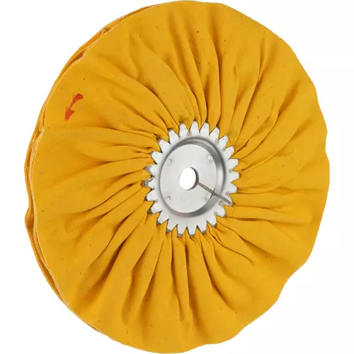 This Hard Airway buff is 100% cotton that's been treated to stiffen the material. The pleats help hold compound. Hard buffs are perfect for removing light scratches in a wide variety of metals.