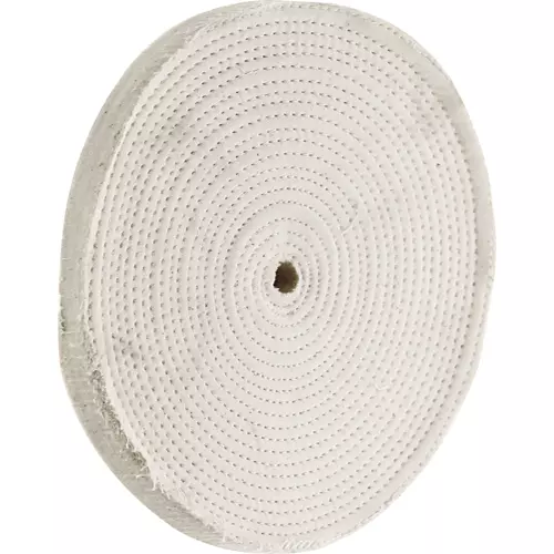 Each layer is 100% unbleached cotton sheeting, spiral sewn approximately 1/8" apart. For final finishing on brass, stainless steel, aluminum, bronze and cast iron.