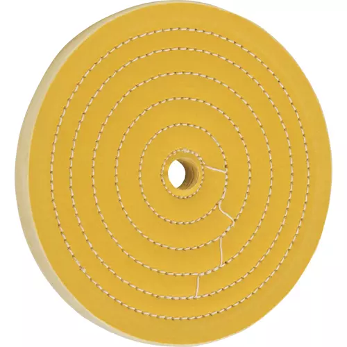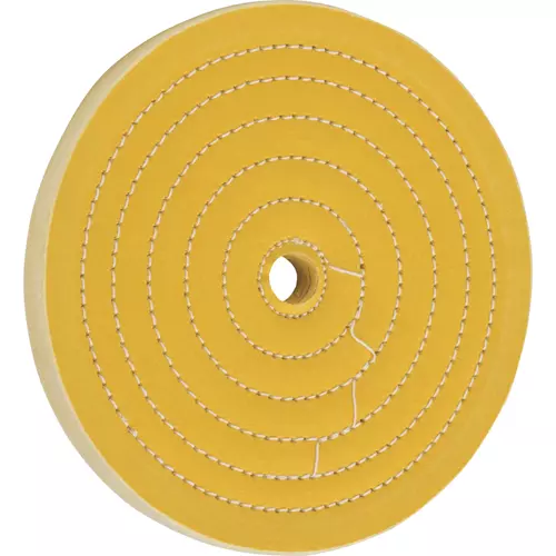 Hard feather-edged muslin is concentrically stitched near the center, leaving the outer edge to provide a fine polishing surface. Perfect for stainless steel, chrome, gold or silver.