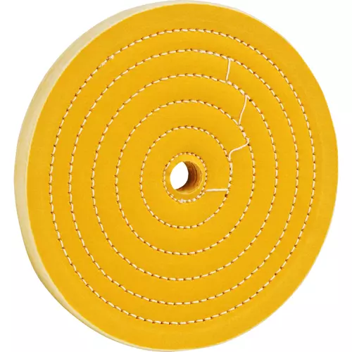 Hard feather-edged muslin is concentrically stitched near the center, leaving the outer edge to provide a fine polishing surface. Perfect for stainless steel, chrome, gold or silver.