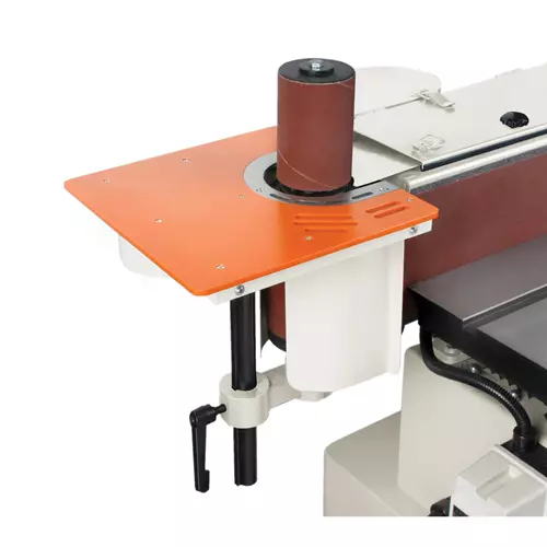 This Shop Fox Auxiliary Table w/ Dust Downdraft fits our W1730 Shop Fox 6" x 89" Oscillating Edge Sander, and improves dust collection when workpieces are sanded on the spindle drum or end of the sanding belt. Includes the auxilary table and 1-3/4", 2-1/4", 3-1/4" and 4-1/4" table inserts. The 4-1/4" table insert will fit over the main sanding belt and idler roller for belt sanding. The smaller table inserts only fit the sanding drum for drum sanding. Easy to install and instructions included. Also fits G0563 and G0564 Oscillating Edge Sanders.