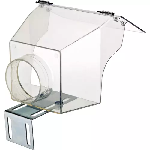 This Lathe Dust Hood features a 4" OD dust port. Hood measures 8" x 7-3/4" with flip-up front guard. Universal mounting hardware can be used with most lathes if you drill and tap mounting holes.